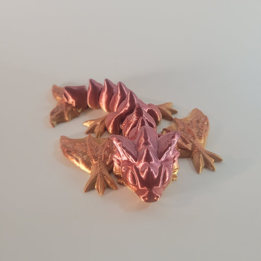 These 3D printed Cinderwing Dragons are a must-have for any toy collection. The color scheme and fantasy theme make it a unique and eye-catching piece. Made from high-quality plastic, this 3D printed flexi sensory fidget toy is both durable and fun to play with. It features a special edition design that collectors will love, and it is an original item. The Beautiful Cinderwing Dragon are a great gift for kids and adults alike.